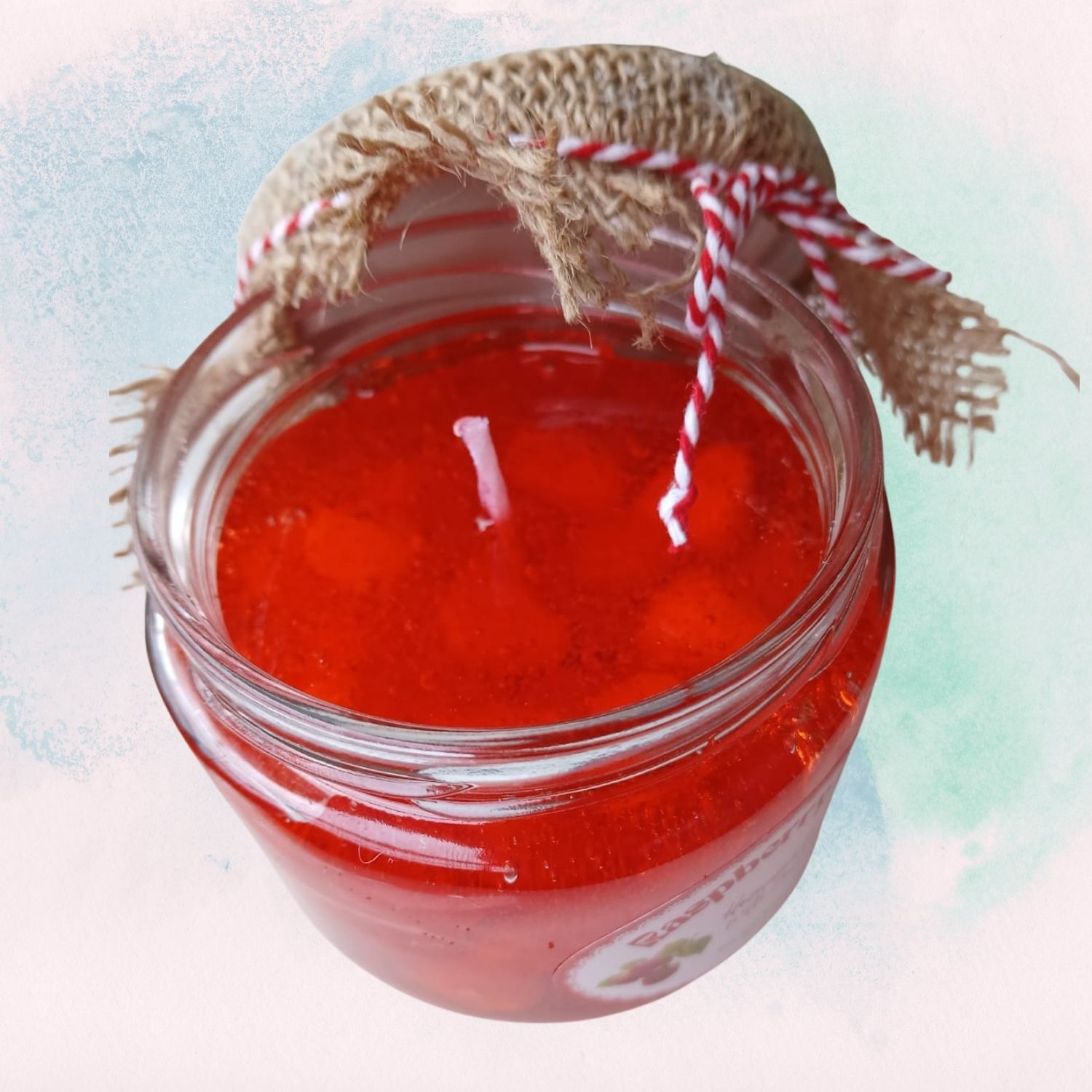Jel mum dokusu ve soya mumdan yapılmış ahududu taneleriyle gerçek reçel görünümü sunan ahududu kokulu kavanoz mum. Canlı, dekoratif ve eğlenceli bir seçenek.