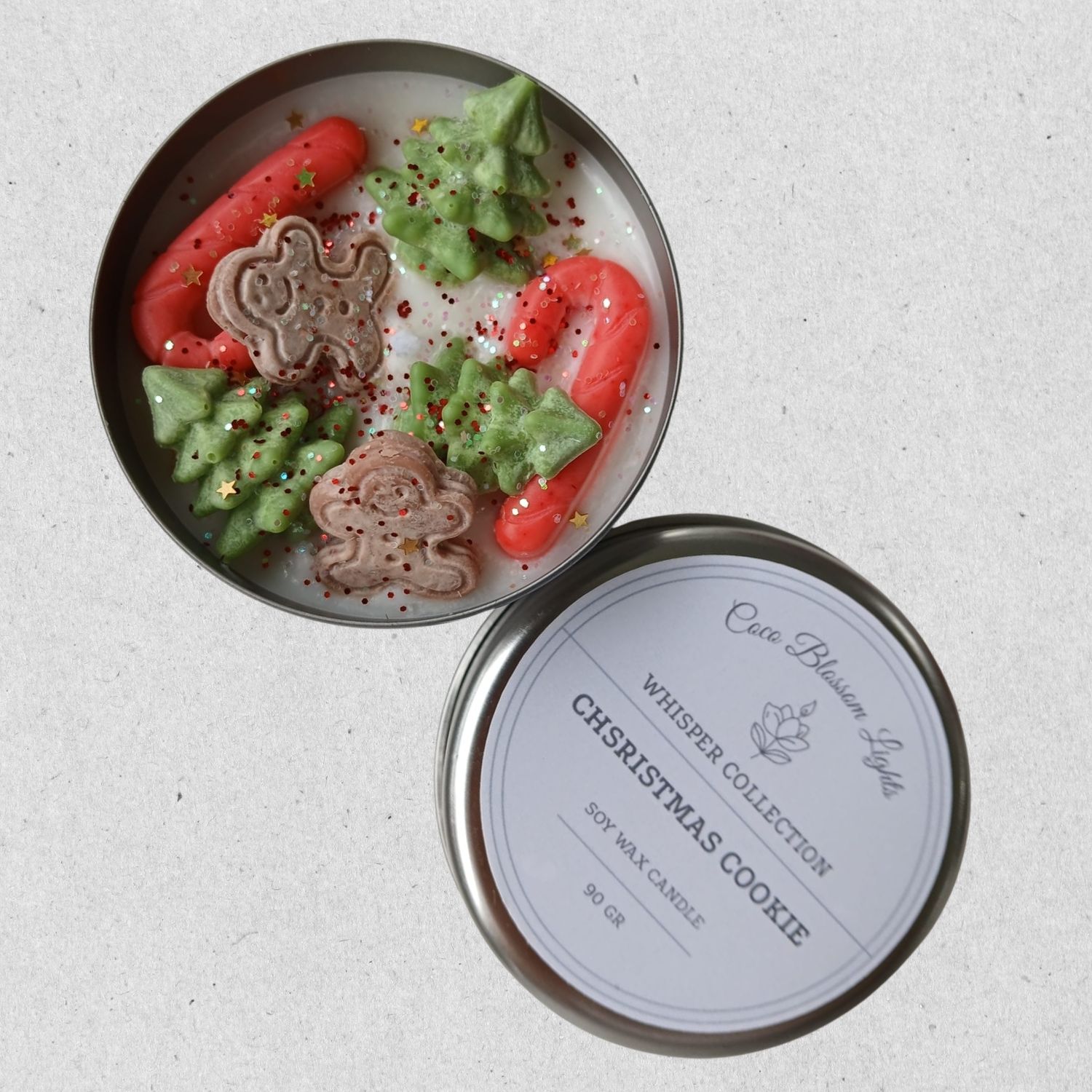 Christmas Cookie, Whisper Koleksiyonu’nun en renkli, en parıltılı ve yılbaşı ruhunu en güçlü şekilde yansıtan özel tasarımlarından biridir. 90 gr’lık gümüş kapaklı metal kutusunda sunulan bu el dökümü %100 soya mumu; mini yılbaşı ağacı, minik kurabiye şekilleri ve ışıldayan dokunuşlarla süslenmiştir. Bu sevimli ve neşeli detaylar, ürünü hem dekoratif hem de hediye olarak ideal hale getirir.