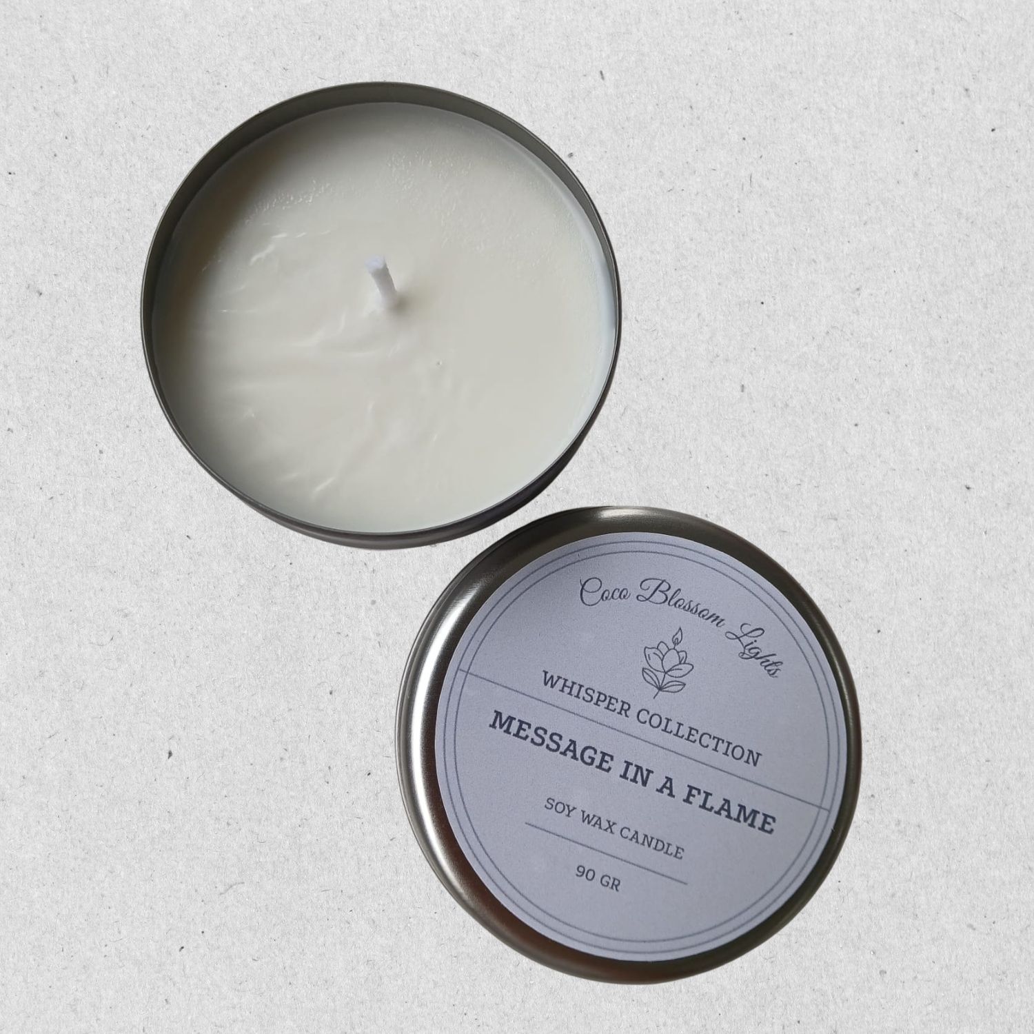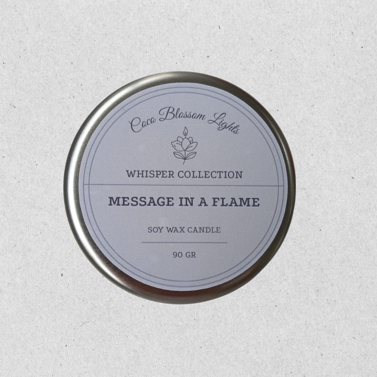 Message In A Flame, Whisper Koleksiyonu’nun en özel ve en kişisel modellerinden biridir. 90 gr’lık gümüş kapaklı metal kutusunda sunulan bu el dökümü %100 soya mumu, içine yerleştirilen harfli boncuklarla sizin belirlediğiniz mesajı taşır. Pamuk fitile sahip mum yandıkça bu gizli mesaj yavaşça ortaya çıkar ve sevdiklerinize unutulmaz bir sürpriz deneyimi sunar.