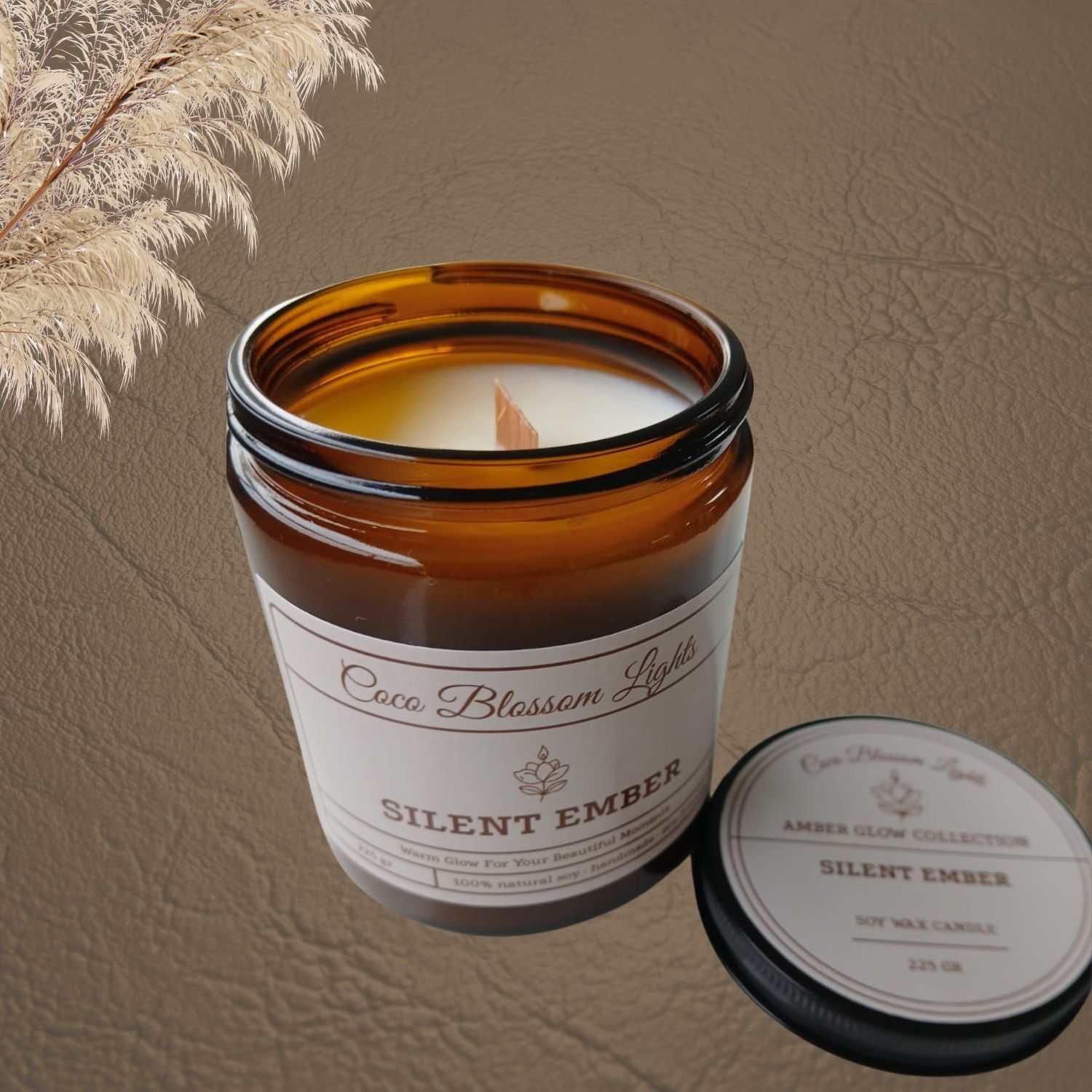 Silent Ember, Amber Glow Koleksiyonu’nun sade ama etkisi güçlü parçalarından biridir. 225 gr %100 soya wax ile el dökümü olarak hazırlanan bu özel mum, amber cam şişesi ve zarif görünümüyle her mekâna sıcak bir atmosfer kazandırır.