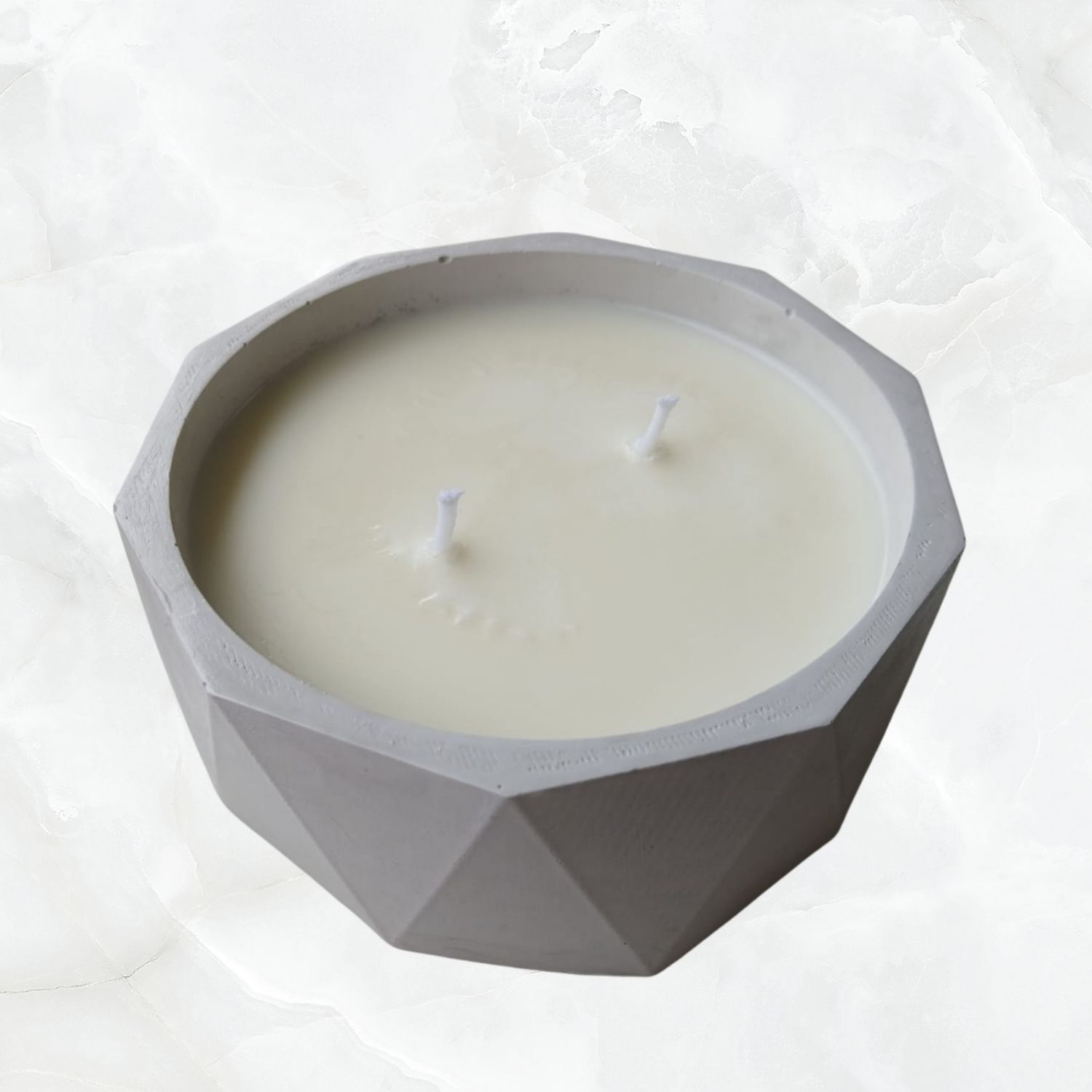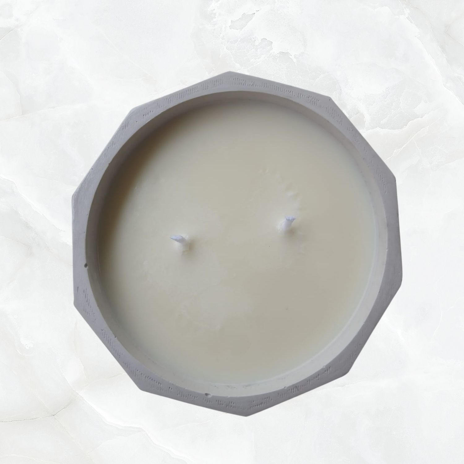 Natural taş dokulu premium kapta sunulan sade, el dökümü soya mum. Sadeliğin ve zarafetin huzur veren parçası.