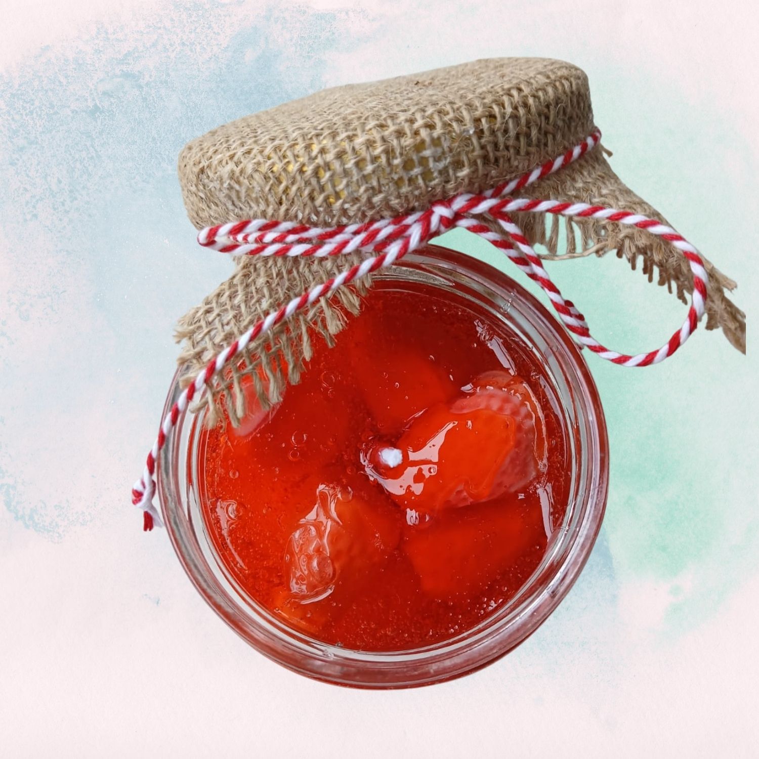 Strawberry Jam, Jam Series’in en neşeli ve en gerçekçi tasarımlarından biridir. Kapaklı cam kavanoz formunda hazırlanan bu özel model, jüt kumaş kapak detayları ve iple bağlanan rustik görünümüyle tam bir reçel kavanozu estetiği sunar. Ürün, hem jel mum hem de soya mumun birlikte kullanılmasıyla hazırlanır; jel mumun şeffaf dokusu sayesinde kavanozun içindeki tüm ayrıntılar dışarıdan rahatlıkla görülebilir. Çilek kokusu ile hafızada güzel bir yer edinir.