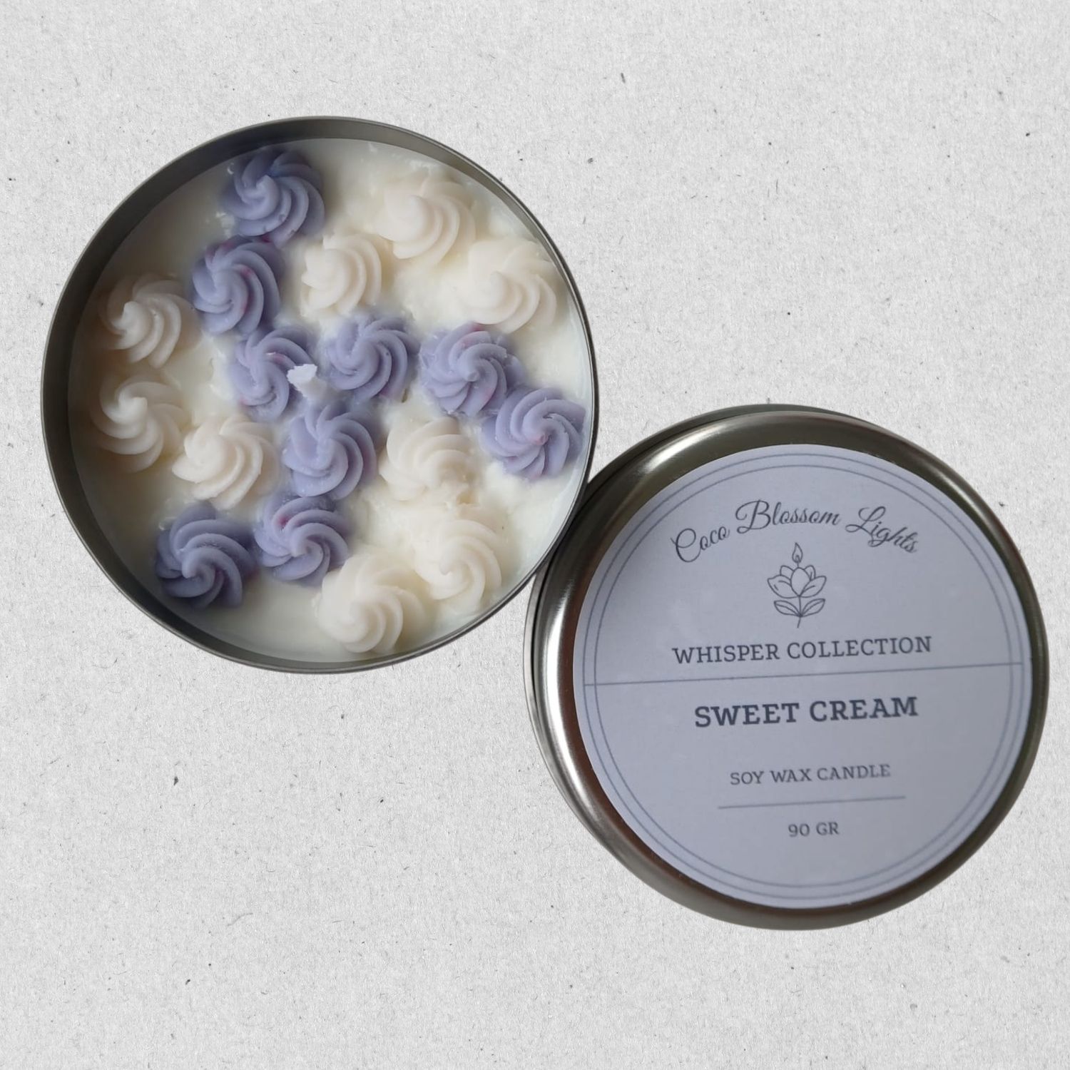 Sweet Cream, Whisper Koleksiyonu’nun en tatlı ve en neşeli tasarımlarından biridir. 90 gr’lık gümüş kapaklı metal kutusunda sunulan bu el dökümü %100 soya mumu, üzerindeki cupcake kremasını andıran dekoratif şekillerle dikkat çeker. Görsel olarak iştah açıcı ve playful bir stile sahip olan Sweet Cream, renk seçenekleri sayesinde her zevke uygun bir alternatif sunar.